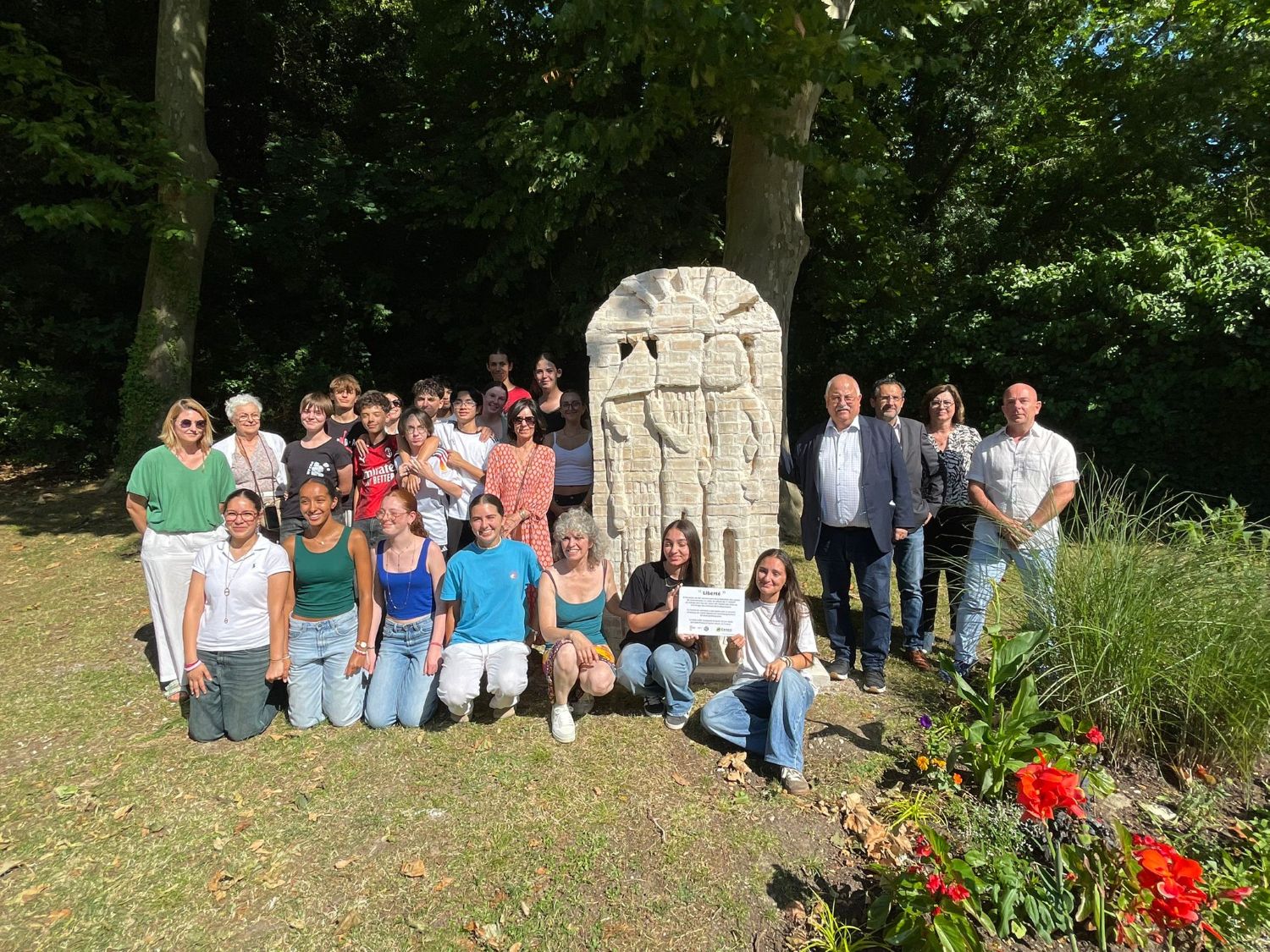 L’implantation au camp d’Oranienburg-Sachsenhausen ne pouvant finalement pas se faire, le maire de Cenon propose d’installer l’œuvre sur le site de l’Hôtel de ville, à côté de la stèle de la déportation. « Ce fut une grande joie d’apprendre que nous allions bénéficier de cet emplacement, d’autant que la plupart des élèves sont cenonnais », témoigne Stéphanie de le Vielleuse. « A travers cette réalisation collective, les élèves ont saisi l’importance de la mémoire, de la liberté, de la citoyenneté, tout en laissant un héritage pour les générations futures », ajoute Océane Massicault.